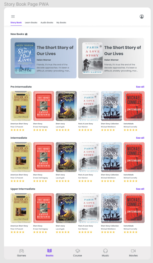 - Introduced features such as music with lyrics for singing practice, movies with slang and phrase definitions, and gamified learning experiences, creating a highly engaging and effective educational environment.